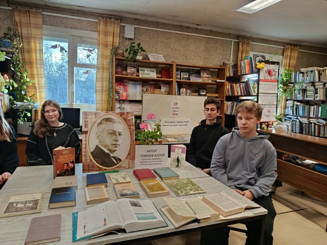 В Чапаевской детской библиотеке, для учащихся 11 класса, в связи со 155 - летием со дня рождения великого русского прозаика, поэта, переводчика - Бунина Иван Алексеевича, провели литературный час «Автор тёмных аллей». Рассказали о жизни и творчестве поэта, его семье и о знаменитых родственниках: поэте В. А. Жуковском, географе П. П. Семёнове - Тянь - Шанском, поэтессе А. П. Буниной. Поэт писал о русской природе, о русском народе, о любви. И. А. Бунин завоевал всемирную славу и был первым Нобелевским лауреатом из русских писателей. Мероприятие посетило 7 человек.